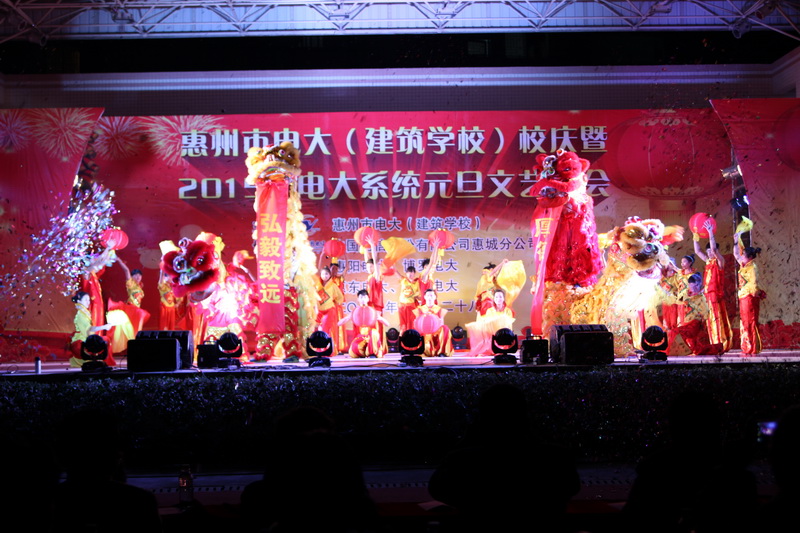 一曲《大喜中国年》以熟悉而欢快的旋律将观众带进中国传统节日的喜庆里,晚会正式拉开序幕。电大师生载歌载舞喜迎八方学子归来。其中《江南雨》《落花情》、《Rock the house》、《舞动奇迹》等舞蹈或古典柔美,或热情奔放,别具特色;快板《转型升级看电大》让我们看到了惠州电大近几年来,不断改革创新,务实进取,各项事业都走在全国基层电大办学转型升级的行列;脱口秀表演,语言诙谐幽默,不时引得观众捧腹大笑,博得现场阵阵掌声更是将整台晚会推向高潮;晚会在悠扬回味余音缭绕的结束曲《花开盛世》声中缓缓落幕,优美的曲真挚的词,我们可以相信,2015,惠州电大(建筑学校)精彩仍将继续!