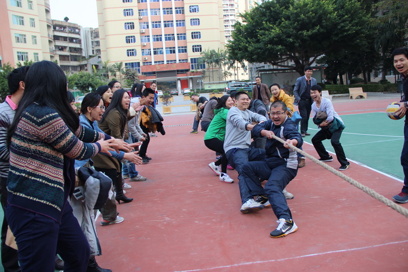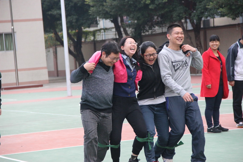 本届趣味运动会共设有“四人五足”、“同舟共济”、“龙凤戏珠”、拔河等四个团体项目。“四人五足”中,由四人组成的队伍手扶着手,肩并着肩,共同奔赴终点,“龙凤戏珠”更是考验着参赛选手们的个人身体素质和彼此之间的默契。当拔河比赛的哨声响起,队员们口中一起高呼着“一二,一二”,双手紧握长绳,憋足了劲拼命后拉,学校领导也在队伍旁边助阵加油,充分地体现了既竞争又合作的精神,场上精彩迭起,场下笑语不断,充满了和谐友爱的气氛。