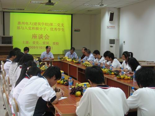 为深入学习十七届四中全会精神,推动中专学生管理工作,10月14日,惠州电大第二党支部与学生入党积极分子举行了座谈会。