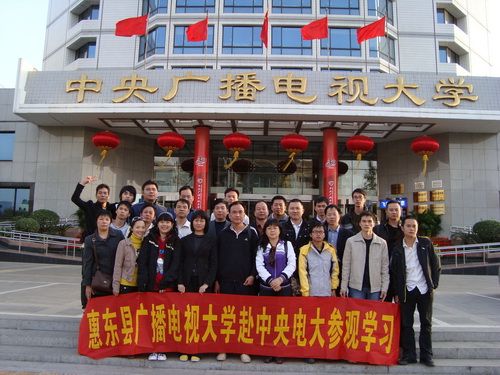 为庆祝中央电大建校30周年,近日,惠东电大校领导率领教职工一行28人赴中央电大参观学习。能够实地参观中央电大,教职工们感到很兴奋与自豪。此外,教职工们还感受了首都北京秋天的风采及奥运场馆的建筑之美,感悟了中华民族的传统文化和奥林匹克精神,无不为日新月异的现代科技和伟大祖国的繁荣富强而赞叹!此次参观活动,教职工均表示获益良多。(惠东电大 罗珍珠供稿)