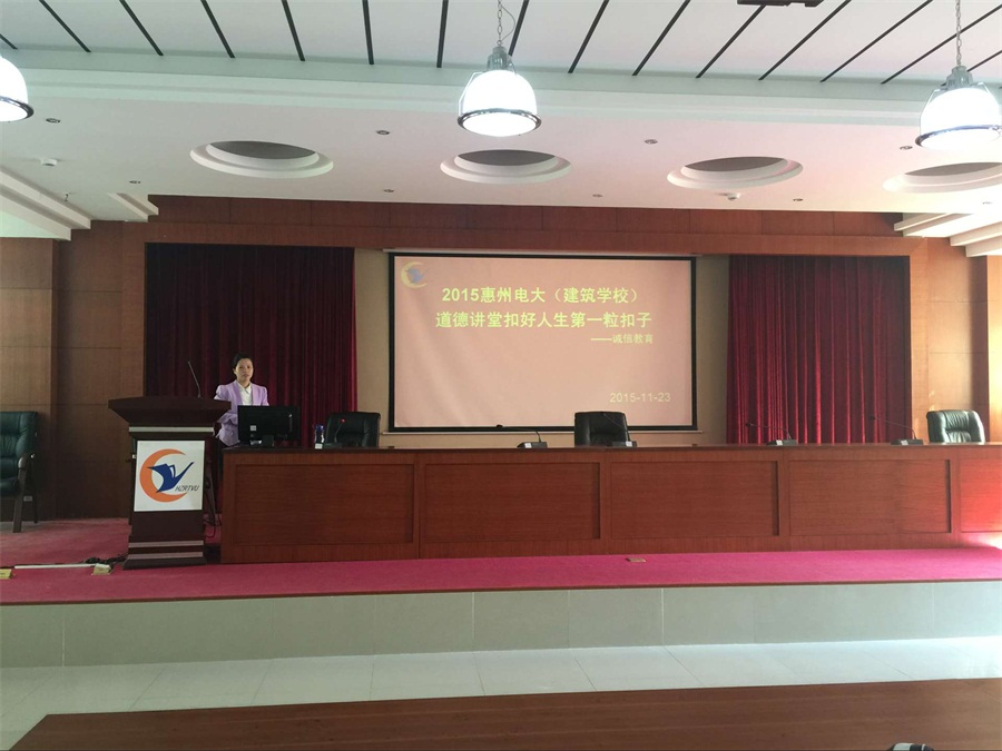为进一步践行好社会主义核心价值观,按照上级文件精神,结合我校实际。我校于11月23日下午,在综合楼12楼多功能报告厅举行了道德讲堂第二十一讲,主题为“扣好人生第一粒扣子”——诚信是金、做好诚实守信的人的讲座。此次讲座由耿智利老师担任主讲,近300名师生参加。