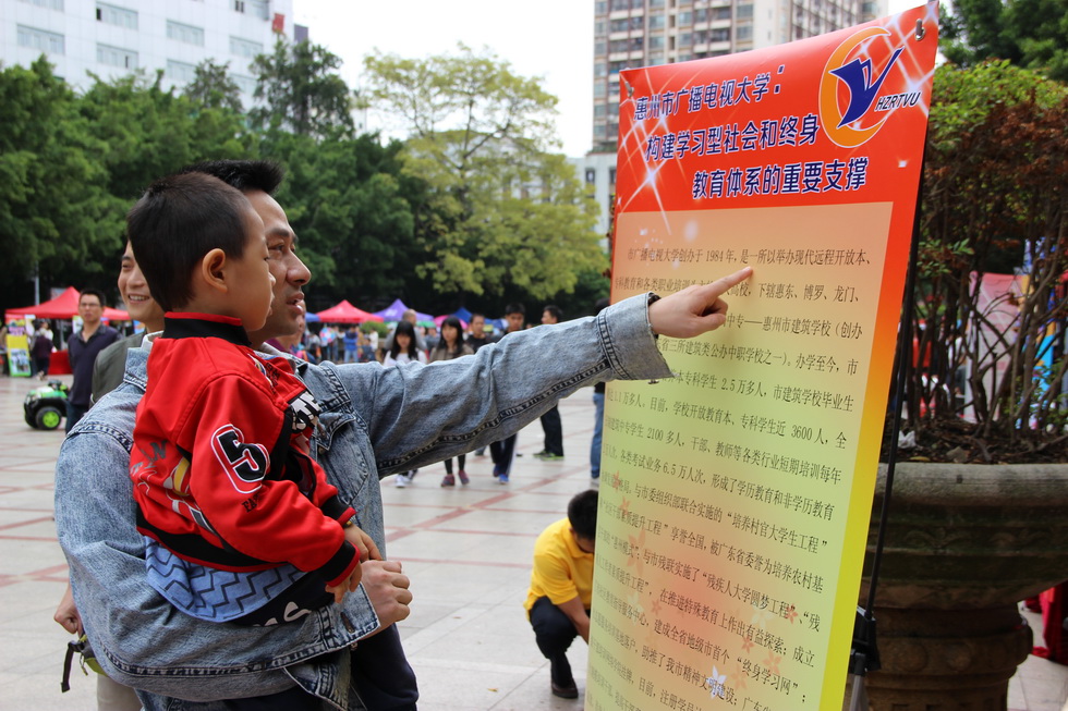 为进一步推进我市学习型城市建设,由市政府主办,惠城区政府和市教育局承办的全民终身学习活动周于11月14日上午在滨江公园正式拉开帷幕。市人大常委会副主任华红出席并讲话,市政府副秘书长高志平主持开幕式,市政府教育督导室主任督学、市教育局党组副书记曾小辉,惠城区委常委钟文宇,以及市直各部门、各县(区)教育局的相关负责人参加开幕式。