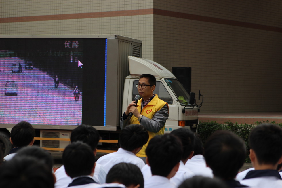 马老师从亲身经历的一场车祸入手,结合道路交通安全中的事故案例,通过图片展示、视频播放、现场互动、案情分析等形式,作了一次形象直观、切入现实、情深意浓的交通安全教育和生命教育, 一串串触目惊心的伤亡数字,一个个血淋淋的事故描述,让全体师生深深地明白了违反交通规则,违背交通道德带来的种种危害。
