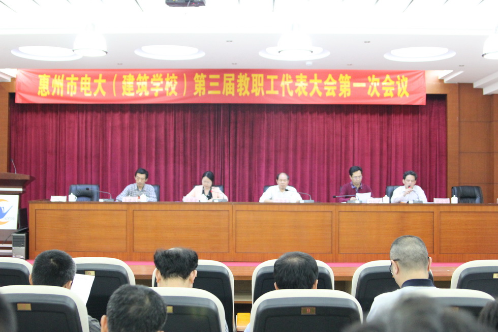 4月15日,惠州市电大(建筑学校)隆重召开第三届教职工代表大会第一次会议。学校领导班子成员、第三届教代会代表、特邀代表共40多人参加会议。大会听取、讨论审议通过了学校党委书记、校长温金龙同志所作的题为《规范管理,提质增效,开创惠州电大转型发展新局面》的学校工作报告。