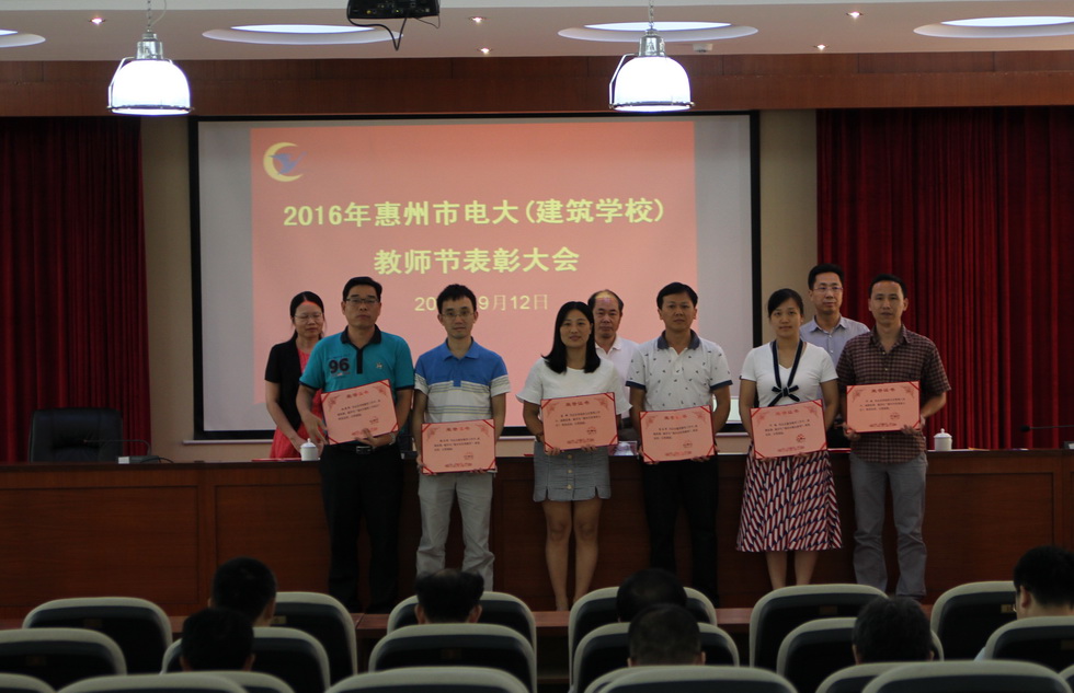 9月12日,惠州市电大(建筑学校)在综合楼多功能报告厅举行2016年教师节表彰大会。学校党委书记、校长温金龙等校领导及全校教职工参加大会。大会由党委副书记、副校长、纪委书记杨祖武主持。