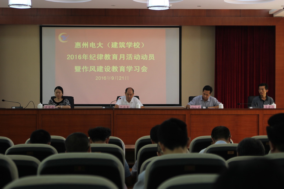 9月21日,惠州电大(建筑学校)召开“2016年纪律教育学习月活动”动员暨作风建设教育学习会。学校中层以上干部、全体党员参加了会议。