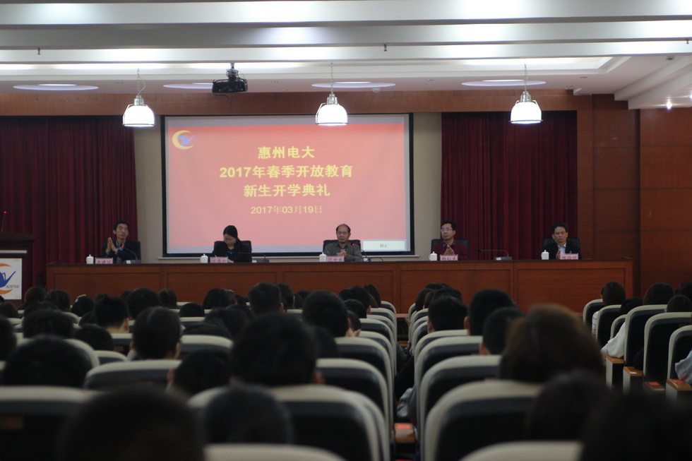 3月19日,惠州电大2017春开放教育本、专科新生开学典礼在学校综合楼学术报告厅举行。学校领导、班主任以及国家开放大学、广东开放大学17春本专科新生近700多人参加了开学典礼及有关活动。典礼由李建国副校长主持。 开学典礼上,市电大党委书记、校长温金龙作了热情洋溢的讲话,向720多名新同学表示热烈的欢迎,向同学们求学的积极、求知的毅力表示致敬,向新生介绍了学校的办学情况,描绘了未来发展蓝图。温金龙要求全体教职工要强化服务意识,全心全意为学生学知识、学本领服务,营造良好的学习氛围;强化质量意识,严谨治学,不断改进服务、优化服务,提高教育教学质量,为学生的立志成才添砖加瓦,为学生的快乐成才加油鼓劲。同时,温金龙对新生提出了四点殷切期望:一是要珍惜机会,学会规划自己,持之以恒,继续提升、完善、充实自己。二是要珍惜缘分,学会看人长处、帮人难处、记人好处,互相学习,互相支持,互相督促,互相进步;三是适应电大学习的方式,自觉地学习,自主地学习,实现个性化、信息化、协同化学习。四是强化人文素质,提升教养、素养、修养,提升品格、能力和本领。 会上,教师代表、新生代表分别作了发言。典礼结束后,班主任对新生进行入学教育辅导。